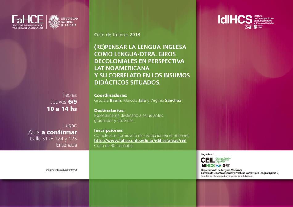 Taller «(Re)pensar la lengua inglesa como lengua-otra. Giros decoloniales en perspectiva latinoamericana y su correlato en los insumos didácticos situados»