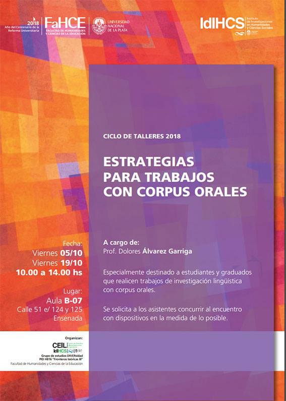 El Centro de Estudios e Investigaciones Lingüísticas (IdIHCS-UNLP-CONICET) invita al noveno taller de su ciclo 2018. Esta iniciativa tiene como objetivo difundir las investigaciones llevadas a cabo desde la unidad de investigación.