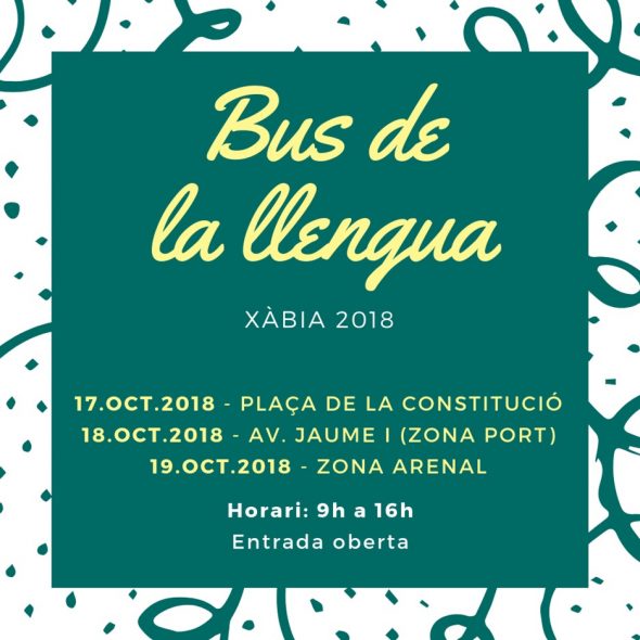 La ubicación del bus estará presente en los tres núcleos de Xàbia. El 17 de octubre en la Plaza de la Constitución, el día 18 octubre en la Avda. Jaume I (zona Puerto) y e viernes 19 en la zona del Arenal. El horario de apertura de este proyecto lingüístico será de 9 a 16 horas.