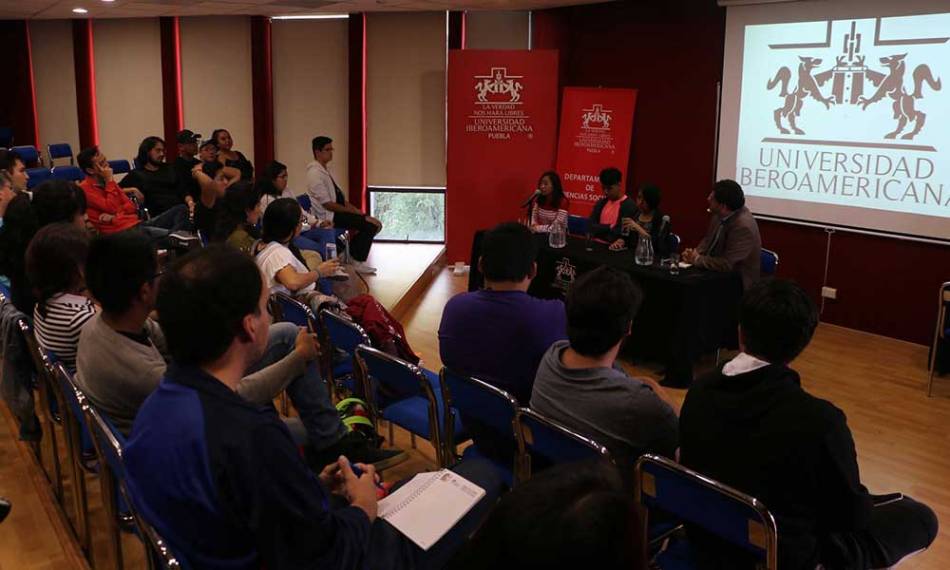 La charla estuvo presentada y moderada por el coordinador de la Licenciatura en Ciencias Políticas y Administración Pública de la IBERO Puebla, el Miguel Calderón Chelius. Y contó con la participación de Rocío Pérez Pérez, Luis Alberto Vázquez y Anette Sánchez Arce, estudiante de la IBERO Puebla de la Licenciatura en Psicología, todos ellos nacidos y criados en San Miguel Canoa.