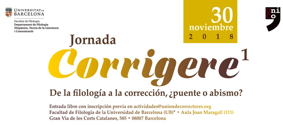 Entidades organizadoras: Departamento de Filología Hispánica, Teoría de la Literatura y Comunicación (Universitat de Barcelona); Unión de Correctores