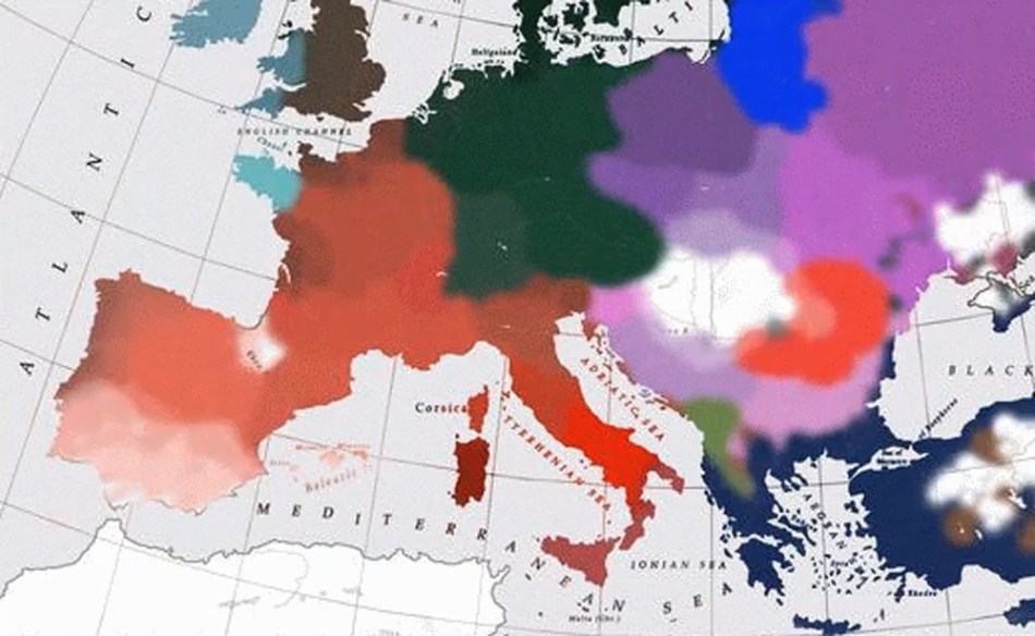 Como siempre, la mejor forma de entender procesos tan prolongados a lo largo de la historia es mediante un mapa. En este caso, uno animado que recorre las veleidades idiomáticas del continente europeo desde aproximadamente el año 500 AC hasta la Baja Edad Media, en torno al 1300 DC. Cada familia indoeuropea se colorea de forma distinta, de tal modo que es más sencillo comprender cómo cambiaron las fronteras lingüísticas de Europa.