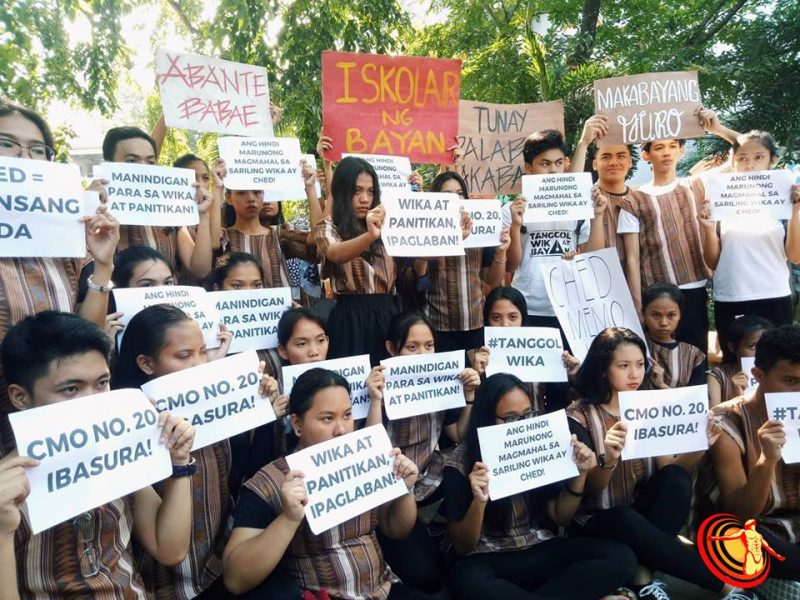 Estudiantes de Manila protestancontra el retiro del filipino como asignatura obligatoria en universidades. Fotografía de Manila Collegian y utilizada con autorización.