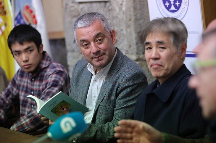 Los acompañaron en la presentación, celebrada en el compostelano Pazo de San Roque, Hiro Asaka, hijo de Takekazu; el coordinador científico del Centro Ramón Piñeiro, Manuel González; el presidente de la Fundación Rosalía de Castro, Ángel Angueira (autor del prólogo de la obra), y el profesor y académico de la lengua gallega Francisco Fernández Rei.