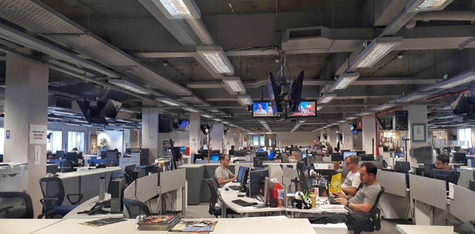 Histórica. La redacción de Clarín en 1970. A la izquierda, de oscuro, Osvaldo Bayer.r