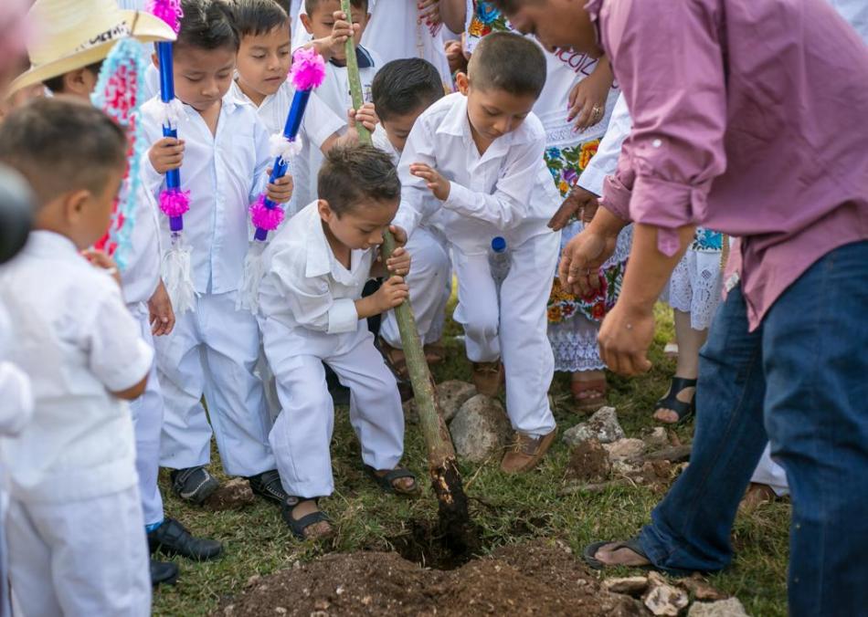 Con respeto, alegría y orgullo, estudiantes del preescolar indígena “Antonio Mediz Bolio” de la comisaría vallisoletana de Xocén caminaron por este poblado custodiando un pequeño árbol de ceiba; posteriormente, con sus manos bendecidas por el j’men del lugar, lo sembraron en un nuevo sitio en señal de la perpetuidad de sus orígenes.