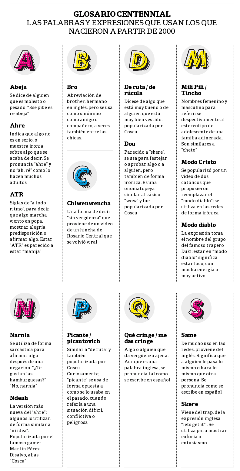 Para los especialistas es un fenómeno identitario habitual. «Es muy importante a esa edad tener un código de expresión propio, distinto al de la generación de la que nos queremos separar. Una vez pasada esa etapa, se mantienen más dentro del código mayoritario de los adultos», explica Santiago Kalinowski, lingüista y director del Departamento de Investigaciones Lingüísticas y Filológicas de la Academia Argentina de Letras. Sobre la influencia del mundo virtual, señala: «Las redes sociales son muy novedosas tecnológicamente, pero desde el lado del léxico es lo mismo: en otra época fue la televisión, el rock, el tango o el lunfardo. Es el lugar del que salen las palabras que provocan esa sensación de grupo».