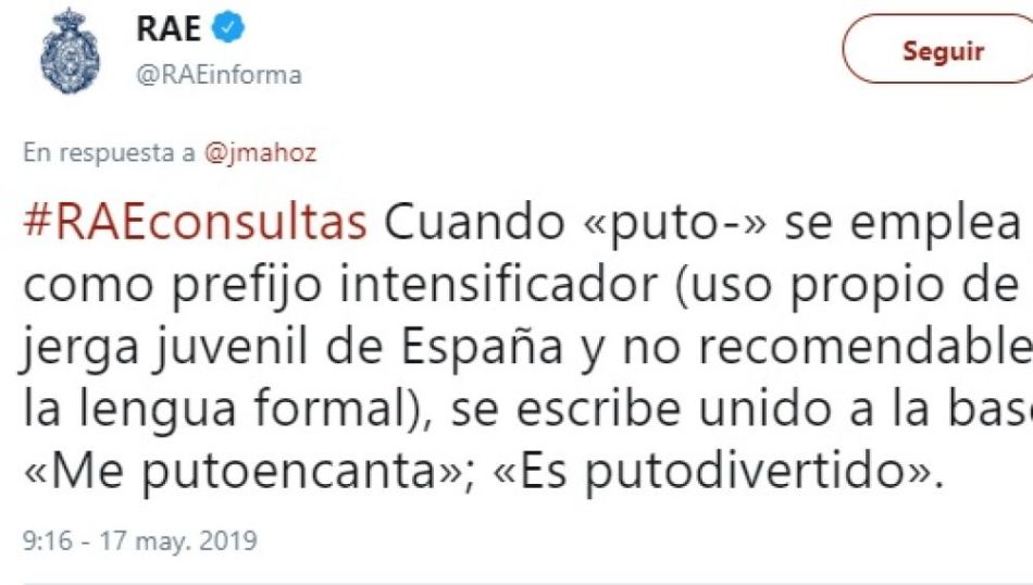 Ante la consulta de un usuario de Twitter, la Real Academia de la lengua Española ha querido hacer una apreciación en la red social que sacará de dudas a muchos jóvenes que enfatizan constantemente sus oraciones haciendo uso de la palabra ‘puto’.
