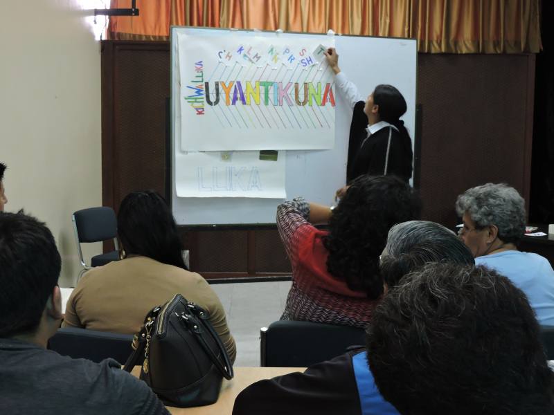 Por ello y para lograr el objetivo se realizan talleres para que la ciudadanía en general tenga la posibilidad de aprender y comprender el kichwa, uno de los tres idiomas principales reconocidos en la Constitución de Ecuador, cuyo uso es cotidiano sobre todo cuando se trabaja con gente de las comunidades indígenas, se dijo.