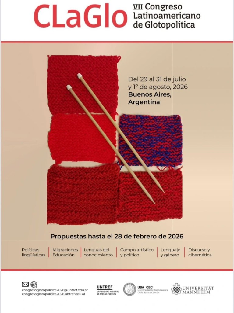0 comments on “VII Congreso Latinoamericano de Glotopolítica: recordatorio de envío de propuestas”