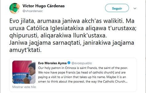 Morales tuitea en inglés y Cárdenas le responde en aymara